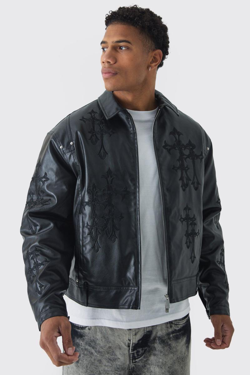 Чорна поліуретанова косуха з хрестовою аплікацією