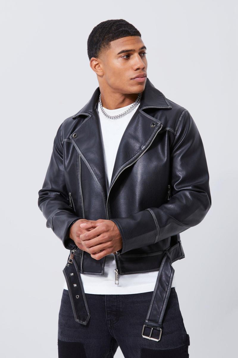 Якщо ви шукаєте стильну куртку, яку можна одягнути в осінньо-зимовий сезон, ця чоловіча байкерська куртка стане класичним і вічним вибором. Ідеально підходить для надягання поверх джемперів і светрів, ця коротка приталена куртка на блискавках і шпильках є обов’язковою річчю в гардеробі, особливо коли температура починає падати. Ця чоловіча шкіряна косуха з довгими рукавами, коміром і блискавкою спереду ідеально підходить для холодних днів, тож не забудьте додати її до своєї колекції верхнього одягу вже сьогодні.