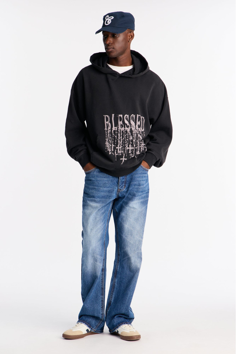Представляємо об'ємний світшот Forever Blessed, створений для тих, хто цінує комфорт та індивідуальність. Його вільний крій і довгі рукави забезпечують максимальну свободу рухів, а зручна кишеня-кенгуру стане в нагоді для тепла рук або зберігання дрібниць. Особливий процес прання та друку надає кожному світшоту неповторного вигляду з унікальною насиченістю кольору. Виготовлений з м'якої та міцної суміші бавовни та поліестеру, він стане вашим улюбленим елементом гардеробу для створення невимушених образів.