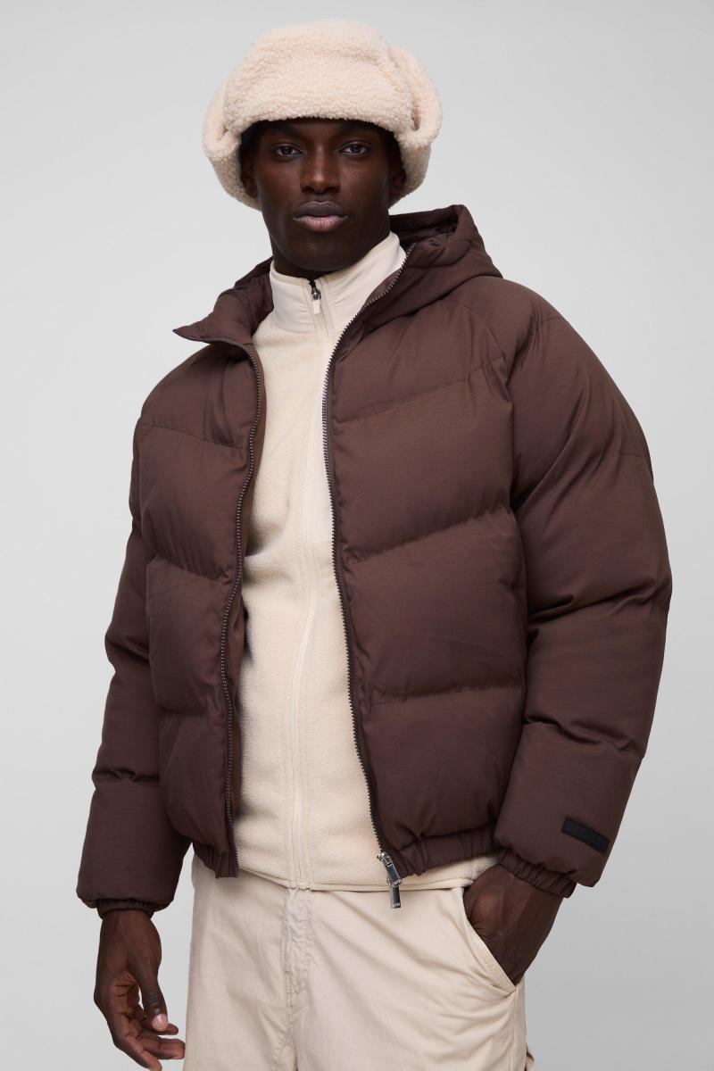 Коричневий чоловічий пуховик з капюшоном звичайного крою