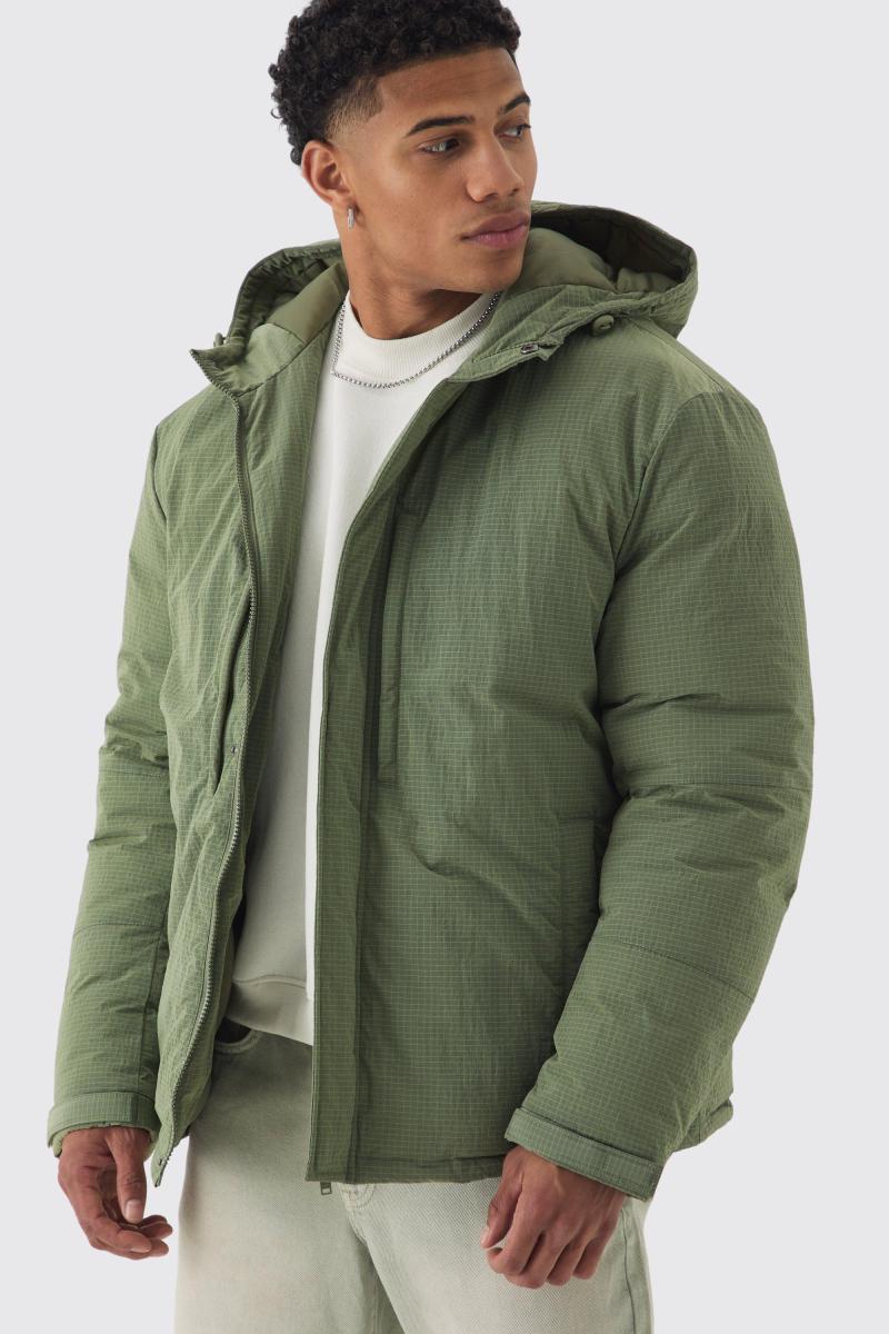 Негабаритна нейлонова парка кольору хакі з капюшоном Ripstop